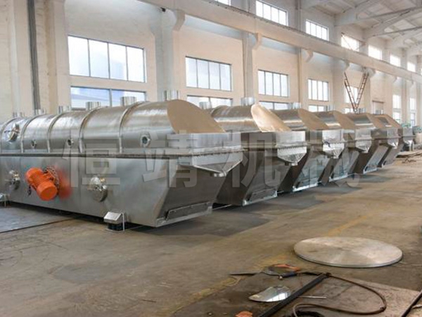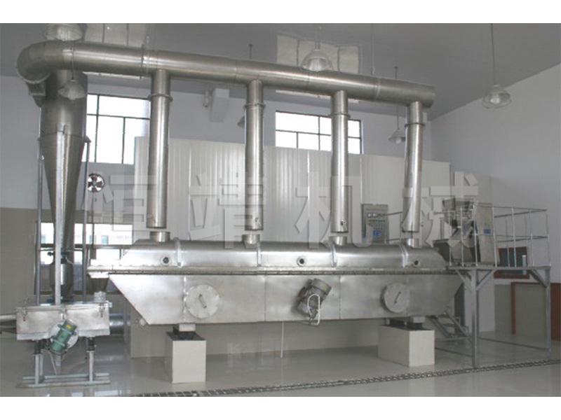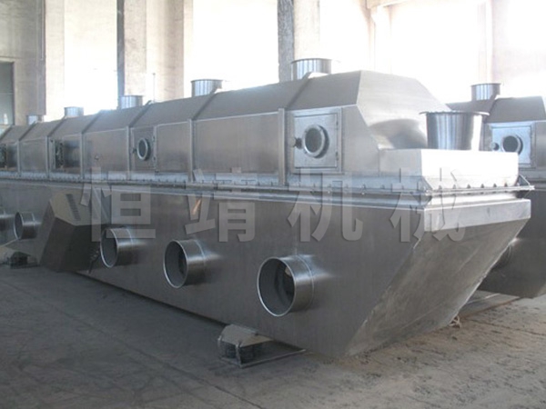 物料自進(jìn)料口進(jìn)入機(jī)內(nèi), 在振動力作用下, 物料沿水平方向拋擲向前連續(xù)運動,熱風(fēng)向上穿過流化床同濕料換熱后, 濕空氣經(jīng)旋風(fēng)分離器除塵后由排風(fēng)口排出, 干燥物料由排料口排出。