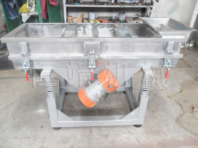 本機(jī)上部采用快拆式手柄,把整機(jī)連成一個(gè)整體,上蓋全密封、有效防止物料在過篩時(shí)由于振動(dòng)而產(chǎn)生粉塵飛揚(yáng)。篩體下部安裝振動(dòng)電機(jī),有效保證了物料的結(jié)構(gòu)緊湊,下部采用彈簧減振,使整機(jī)在平穩(wěn)狀態(tài)下工作。下面底座采用可調(diào)式,可調(diào)節(jié)正在過篩時(shí)的篩面傾斜角度,根據(jù)物料特性以取得過篩效果。